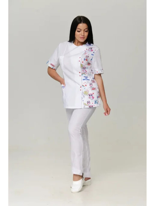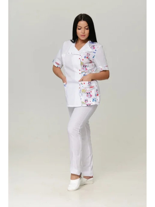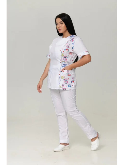 Костюм хирургический женский принт / Медицинский костюм / Медицинская форма / Медицинская спецодежда