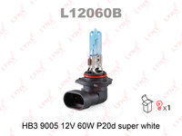 Лампа галогеновая hb3 9005 12v 60w p20d supe white l12060b LYNXauto арт. L12060B