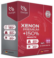 Лампа автомобильная ксеноновая Clearlight Xenon Premium +150%, цоколь H7, 5000 К, 35 Вт, 2 шт
