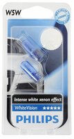 Лампа автомобильная Philips "WhiteVision", ксенон, цоколь W5W, 12 В, 5 Вт, 2 шт