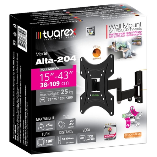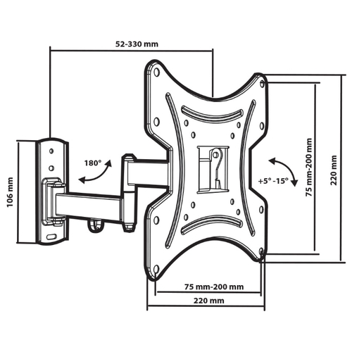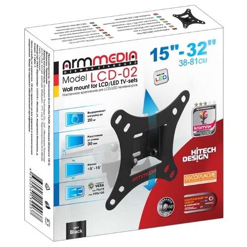 Телевизор Кронштейн Kromax DIX-15 черный 15"-28" наклонно-поворотный до 30кг