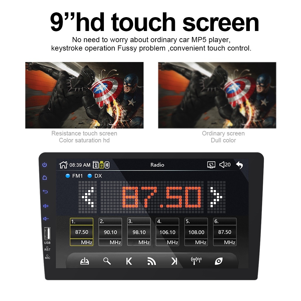 9 дюймов 1din Car MP5 Player Contact Screen FM Radio Bluetooth USB AUX Зеркальная ссылка