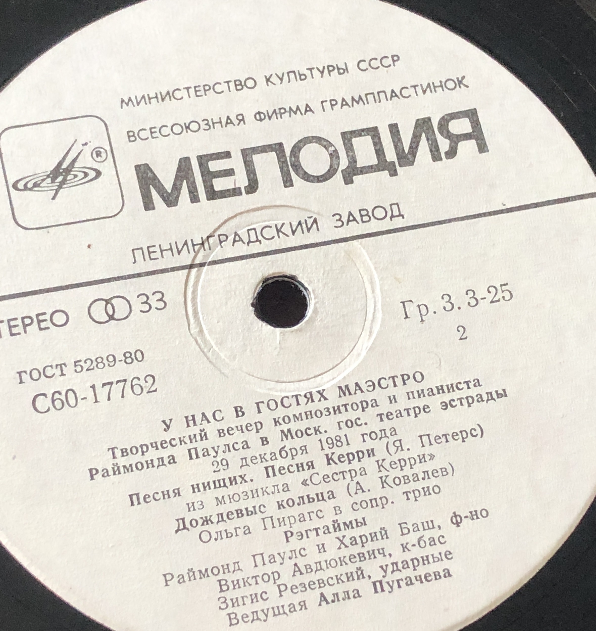 Виниловая пластинка Раймонд Паулс - У нас в гостях маэстро 300 мм