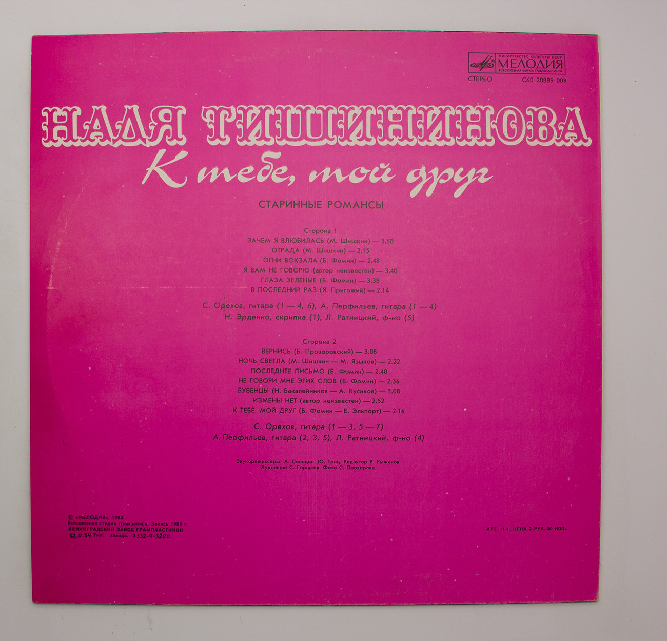 Виниловая пластинка Надя Тишининова - К тебе, мой друг