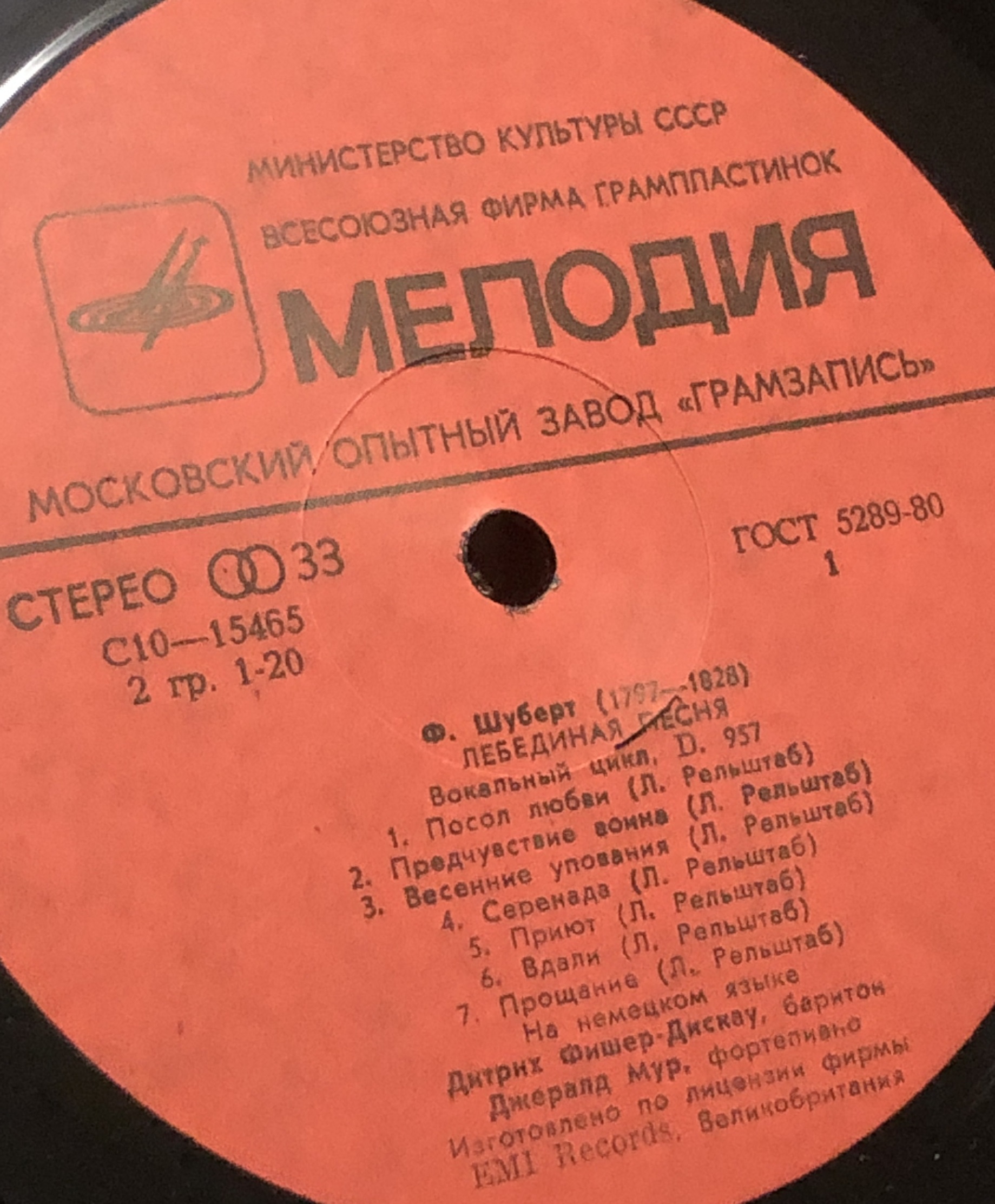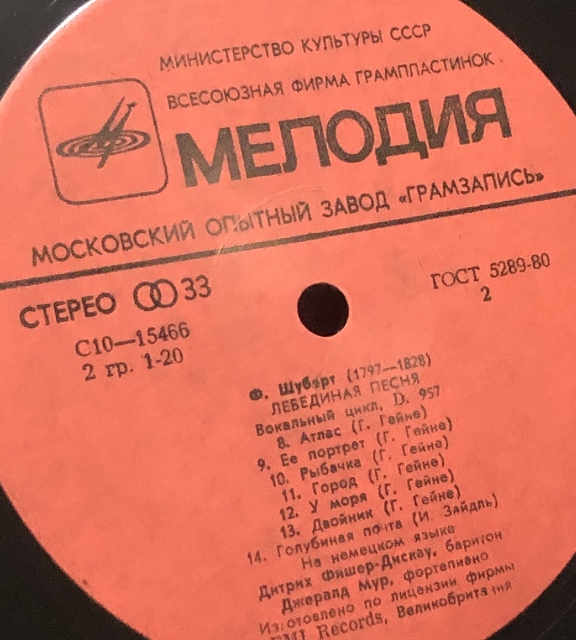 Виниловая пластинка Ф. Шуберт. Лебединая песня 300 мм