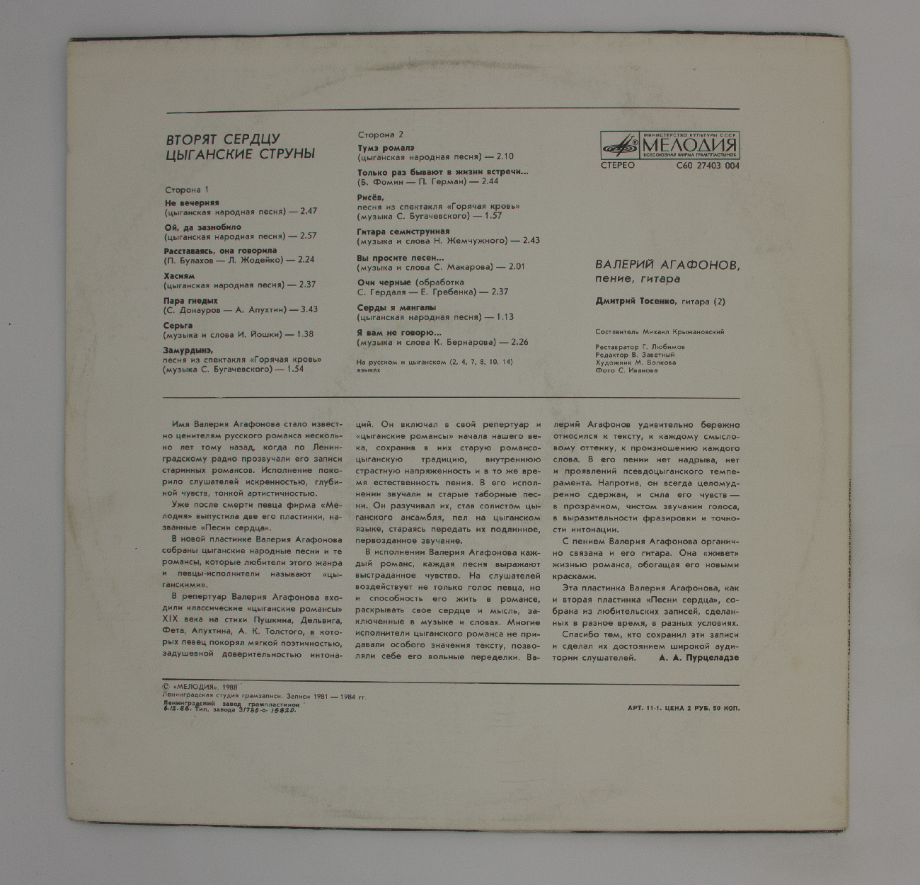Виниловая пластинка Валерий Агафонов - Вторят сердцу цыганские струны - LP