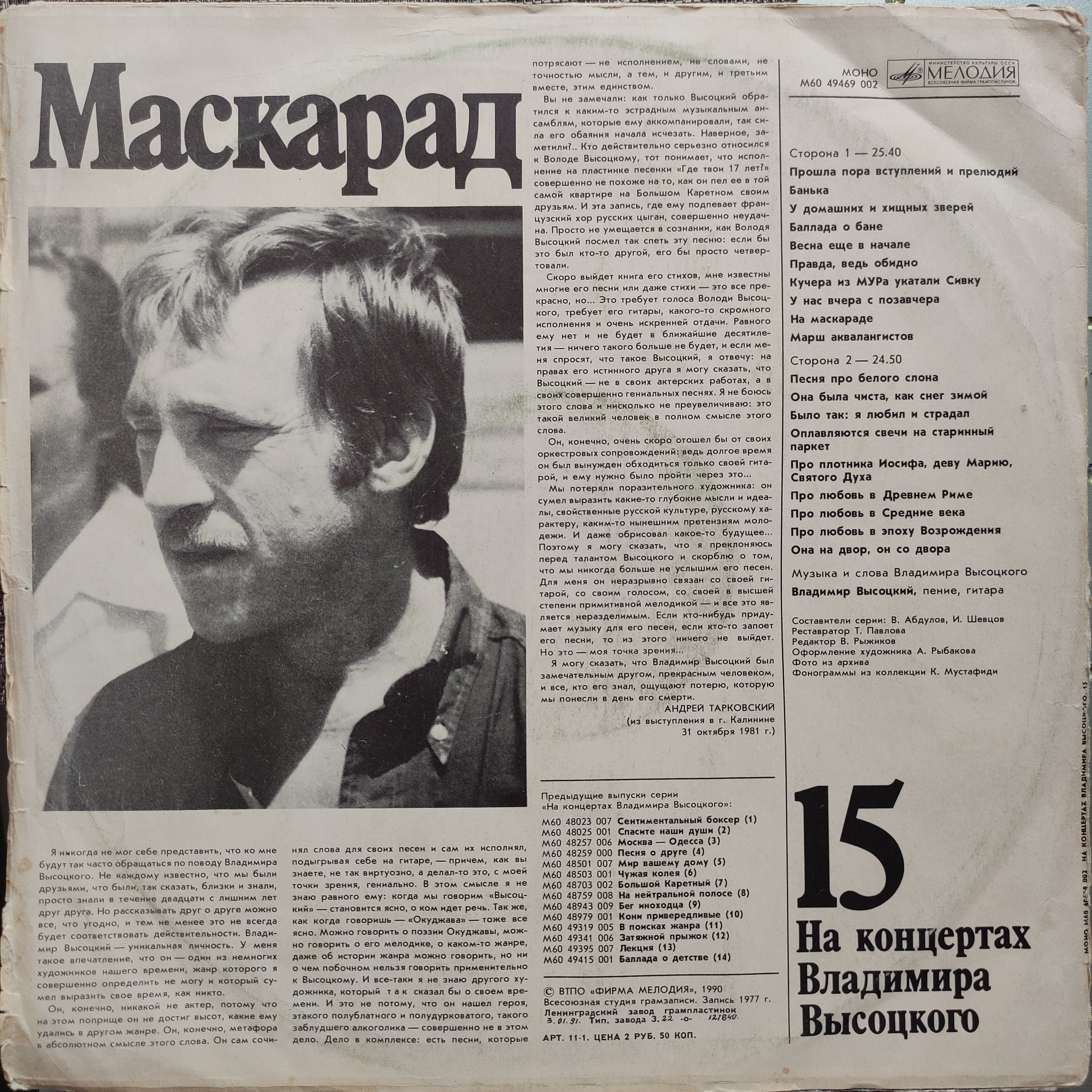 Виниловая пластинка Владимир Высоцкий. Серия: "На концертах Владимира Высоцкого №15. См. описание