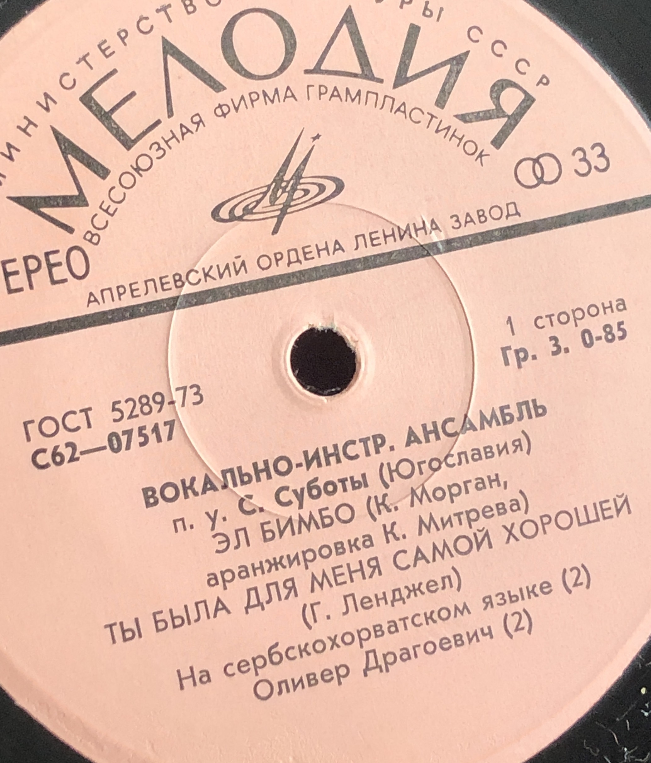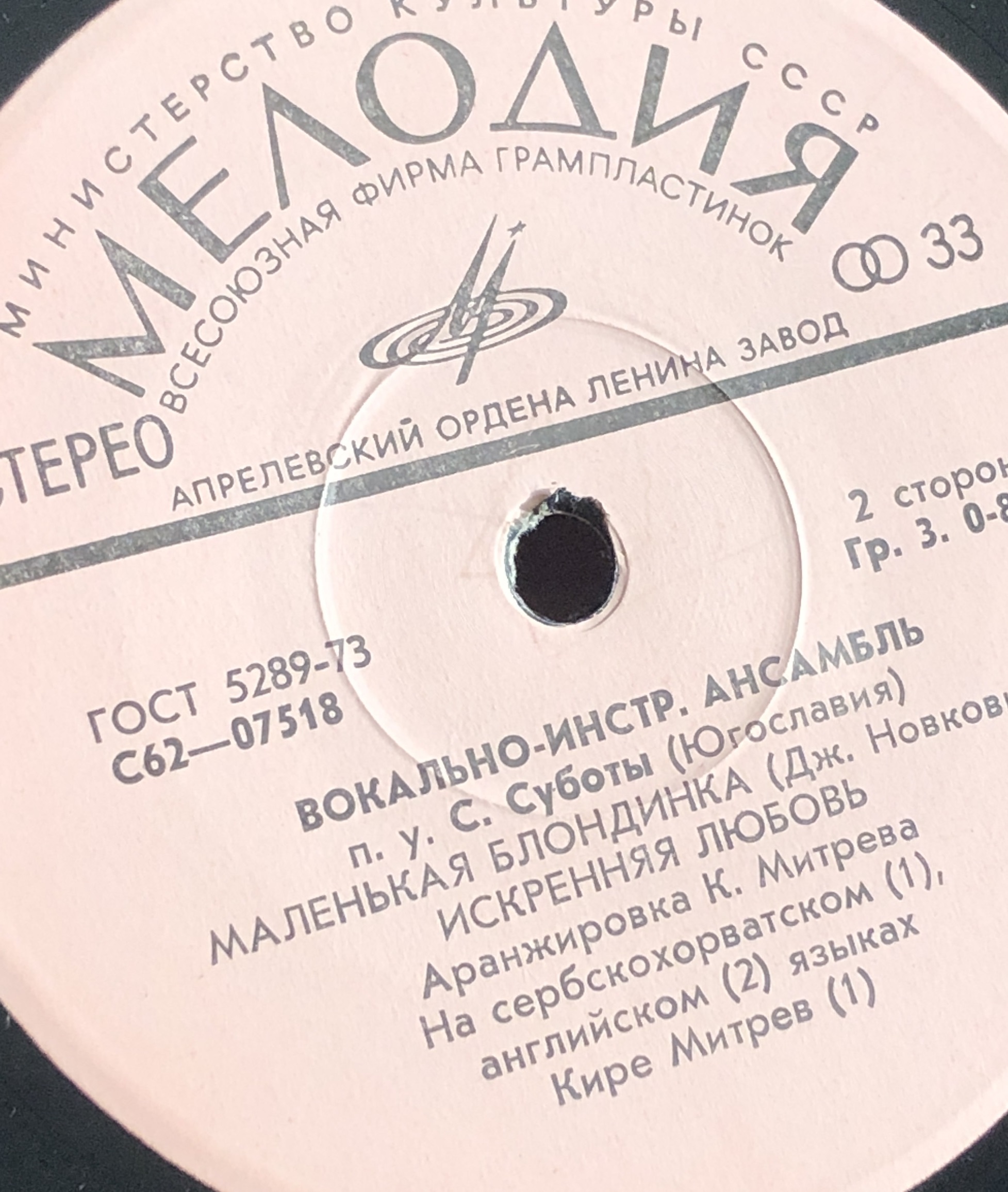Виниловая пластинка Ансамбль Саши Суботы 175 мм