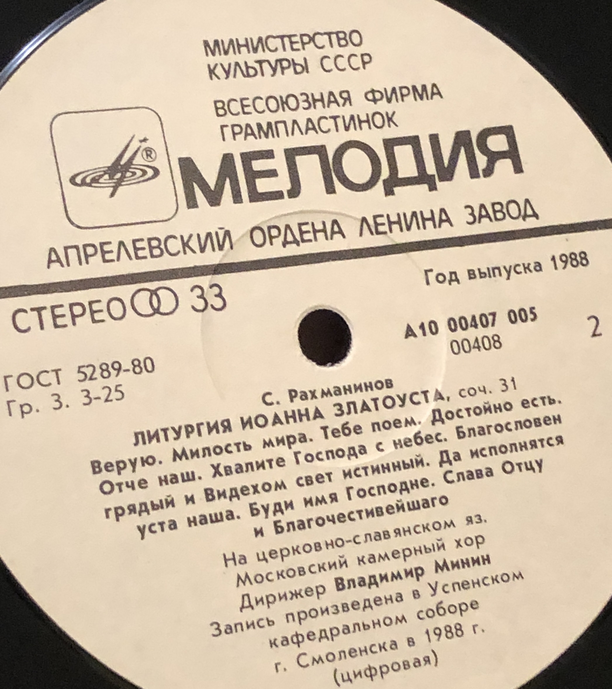 Виниловая пластинка Сергей Васильевич Рахманинов - Литургия Иоанна Златоуста 300 мм