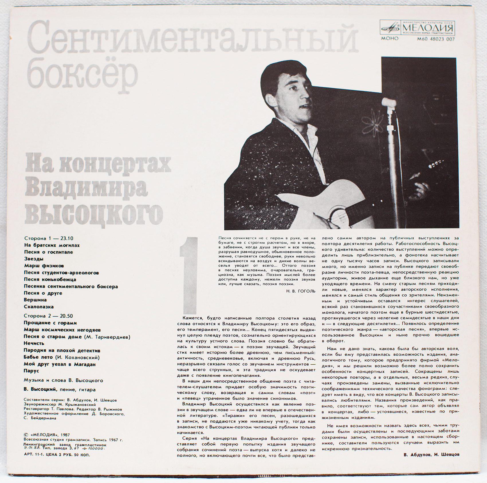 На концертах Владимира Высоцкого 1. Сентиментальный боксер (1976, EX+) LP