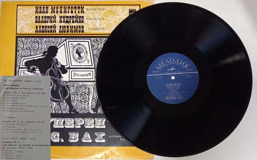 Пластинка виниловая "Ф. Куперен, И. Бах. Две сюиты для виолы" 300 мм. (Сост. отл.)