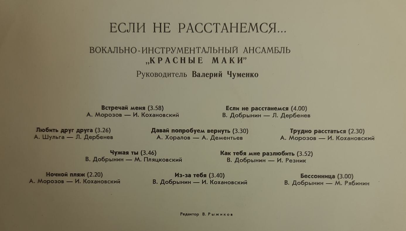 Пластинка виниловая "Красные маки. Если не расстанемся" 300 мм. (Сост. на фото)