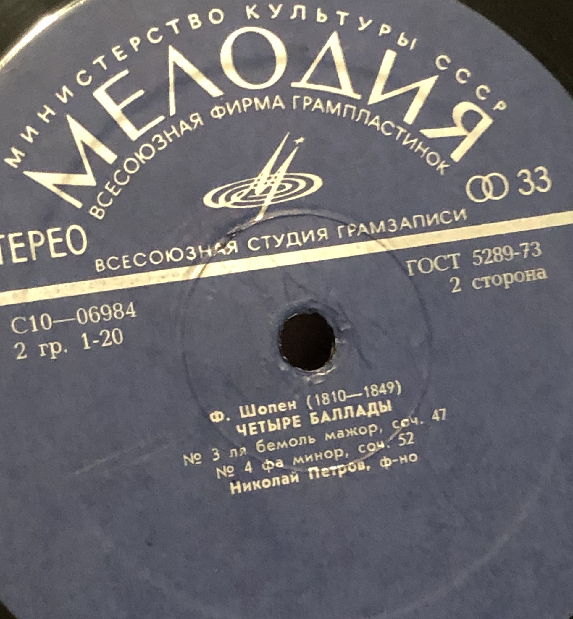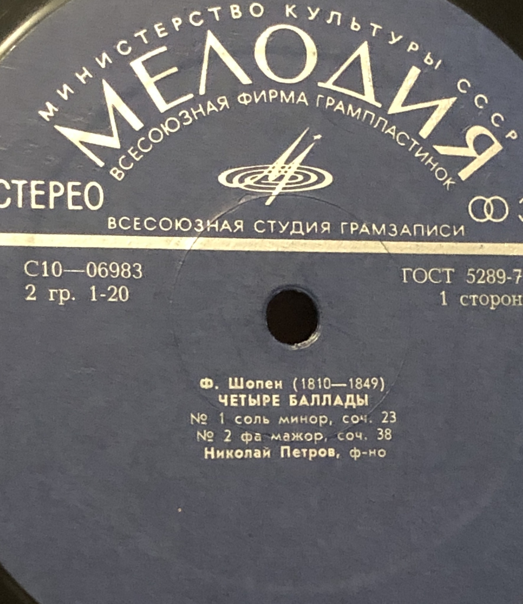 Виниловая пластинка Ф. Шопен - Четыре баллады - Николай Петров 300 мм