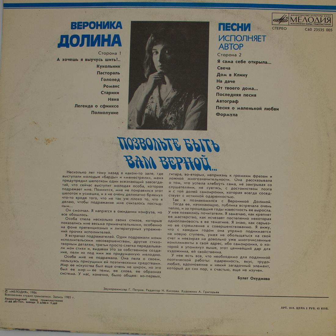 Вероника Долина - альбом Позвольте быть вам верной... (LP)