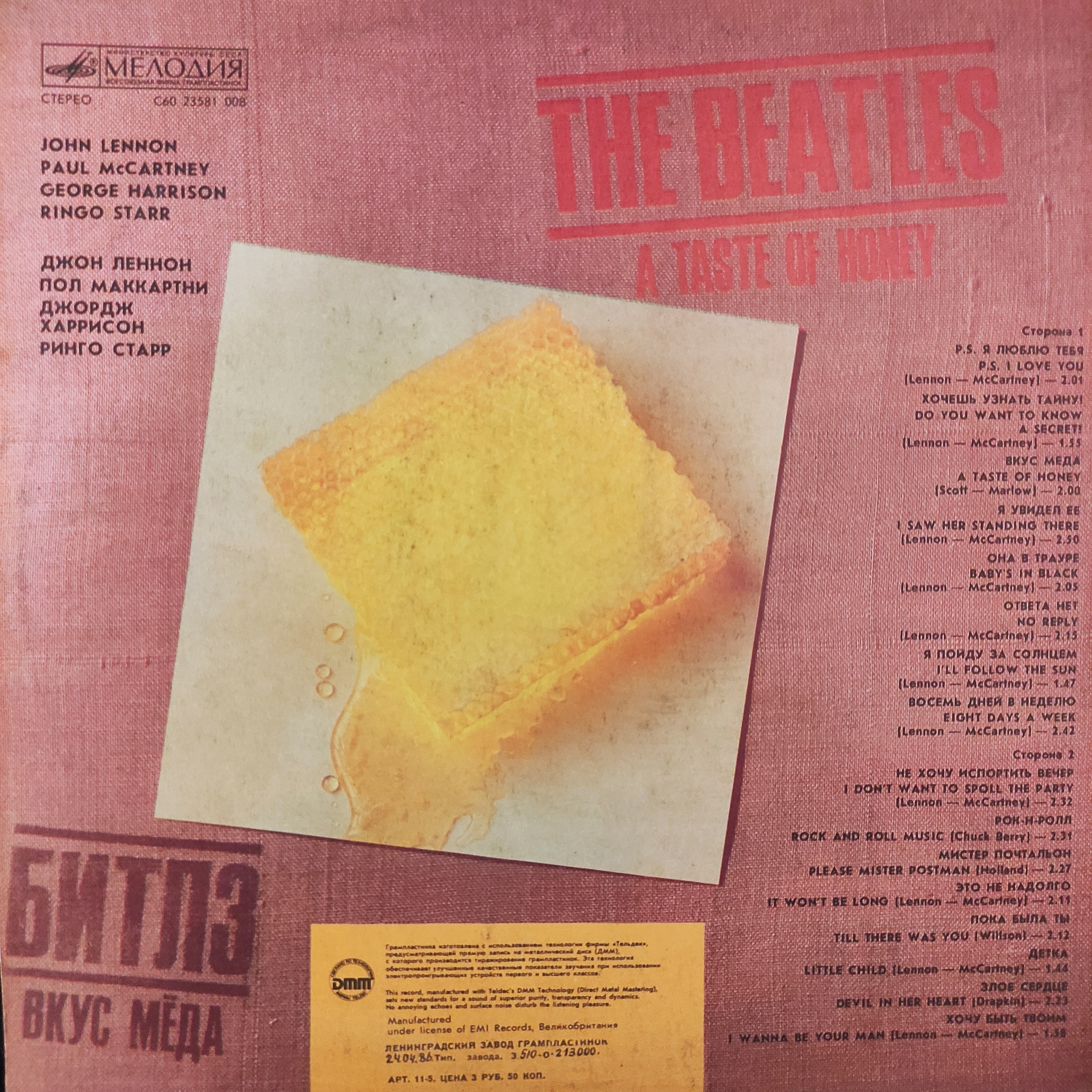 Виниловая пластинка. Битлз: "Вкус Мёда". От. сост.