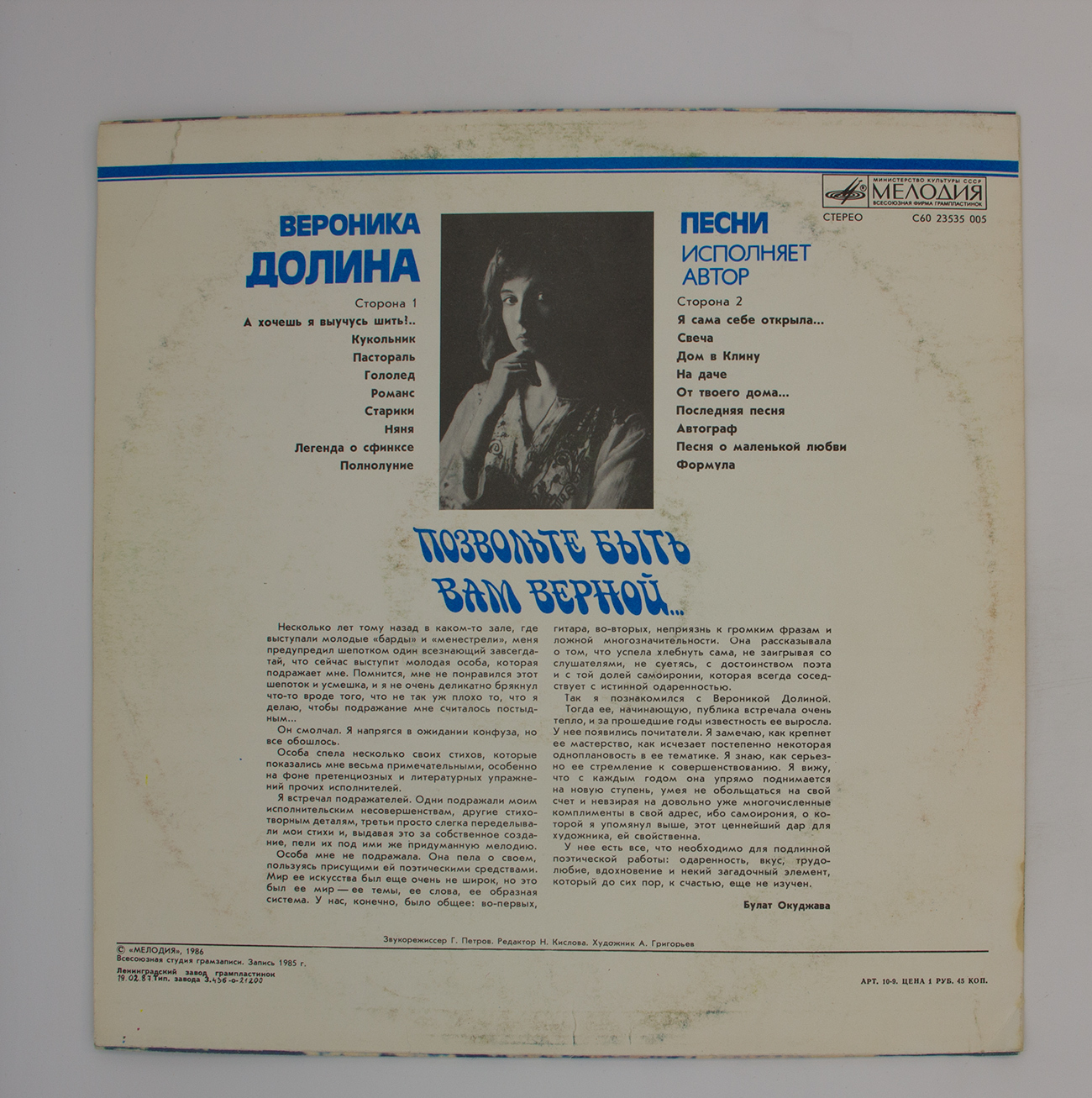 Виниловая пластинка Вероника Долина - Позвольте быть вам верной..., - LP