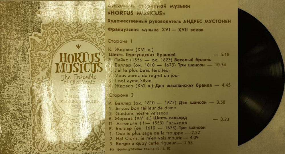 Виниловая пластинка "Ансамбль старинной музыки. Французская музыка XVI-XVII вв." 300 мм. (Со