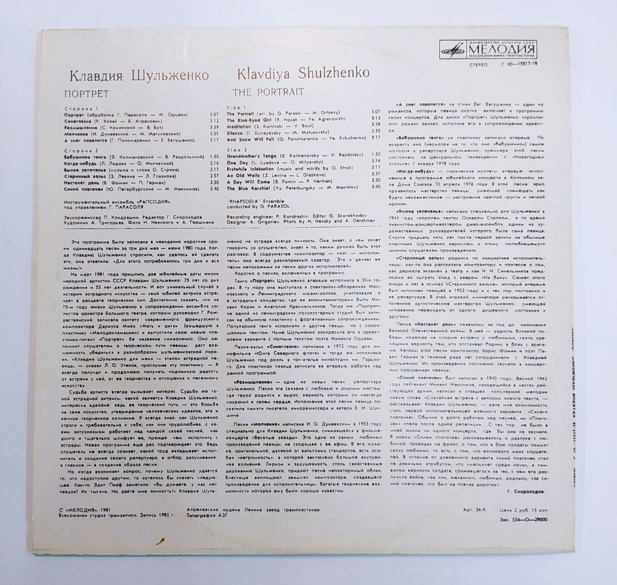 Пластинка виниловая "В. Караулов. Русская клавирная музыка XVIII-XIX в." Мелодия 300 мм. (Сост. отл.