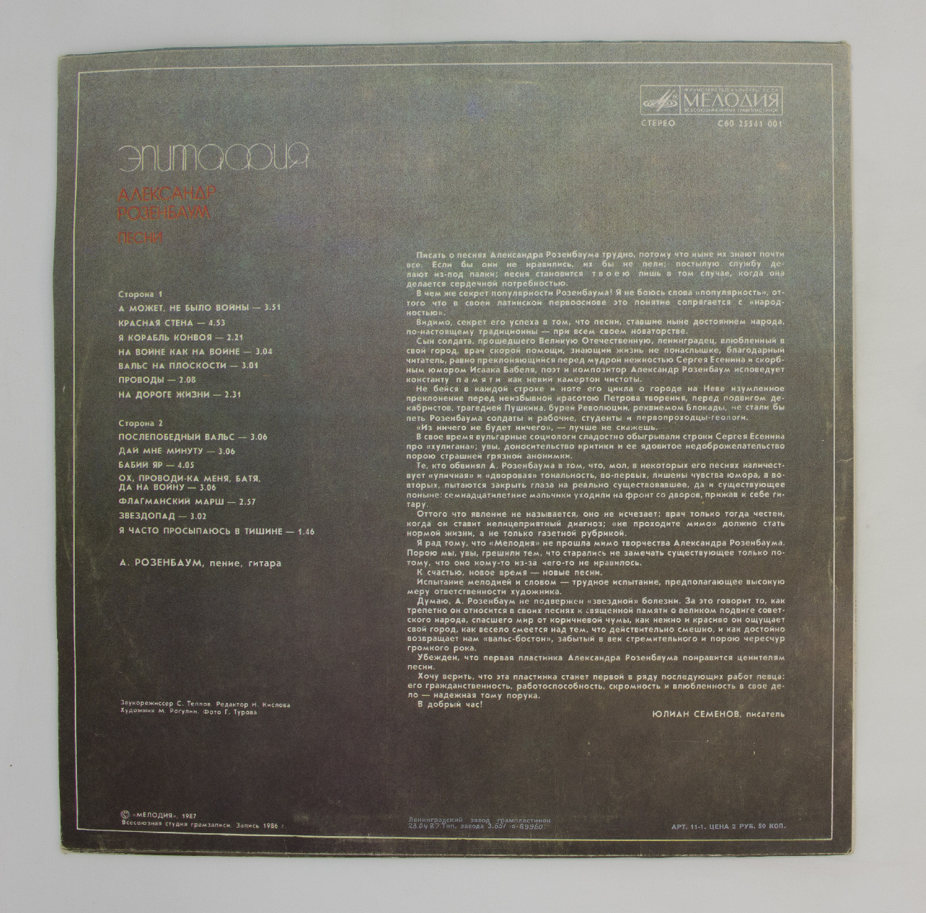 Виниловая пластинка Александр Розенбаум - Эпитафия, - LP
