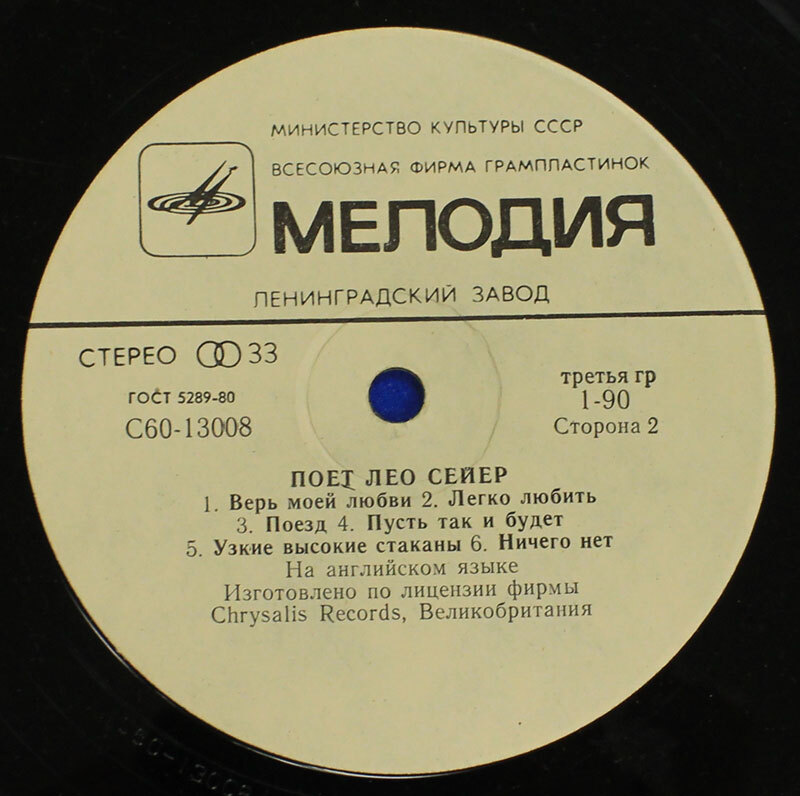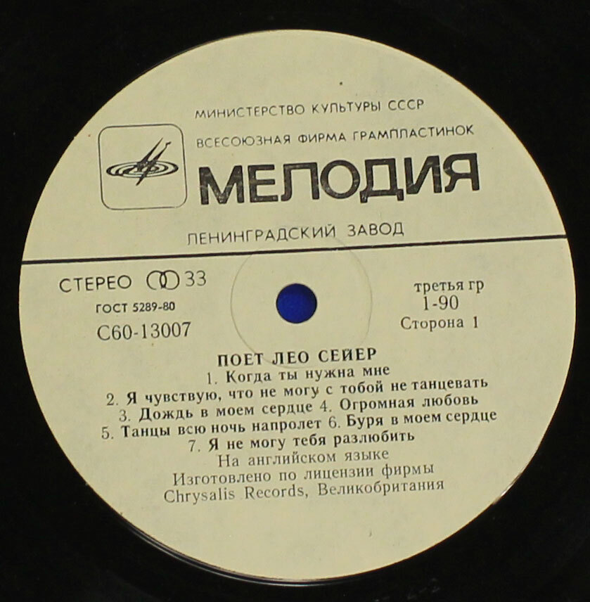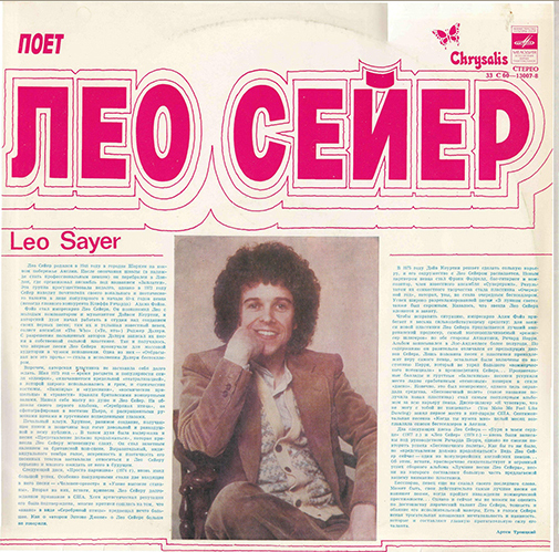 Пластинка виниловая "Поет Лео Сейер" Мелодия 1980 300 мм. (Сост. на фото)
