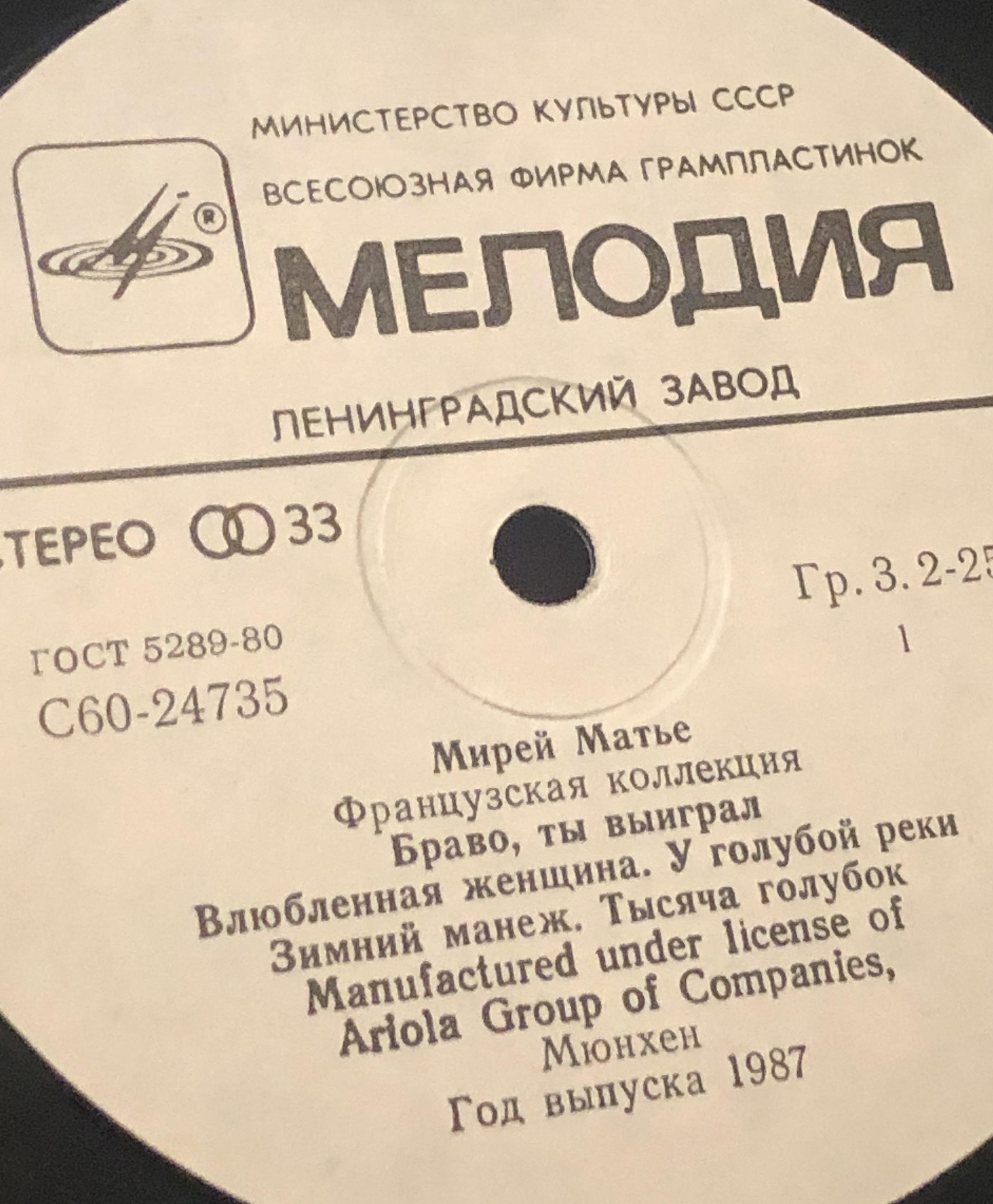 Виниловая пластинка Пластинка виниловая "Г. Отс. Арии" Мелодия 300 мм. (Сост. на фото)