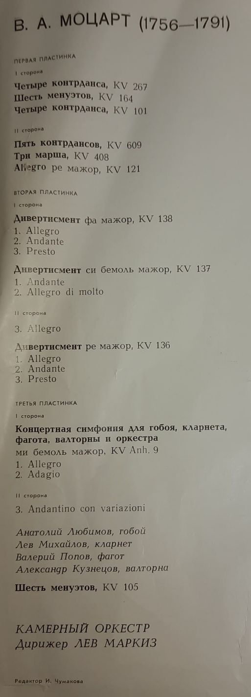 Набор виниловых пластинок (3 шт) "В. Моцарт. Концертная симфония" 300 мм. (Сост. отл.)