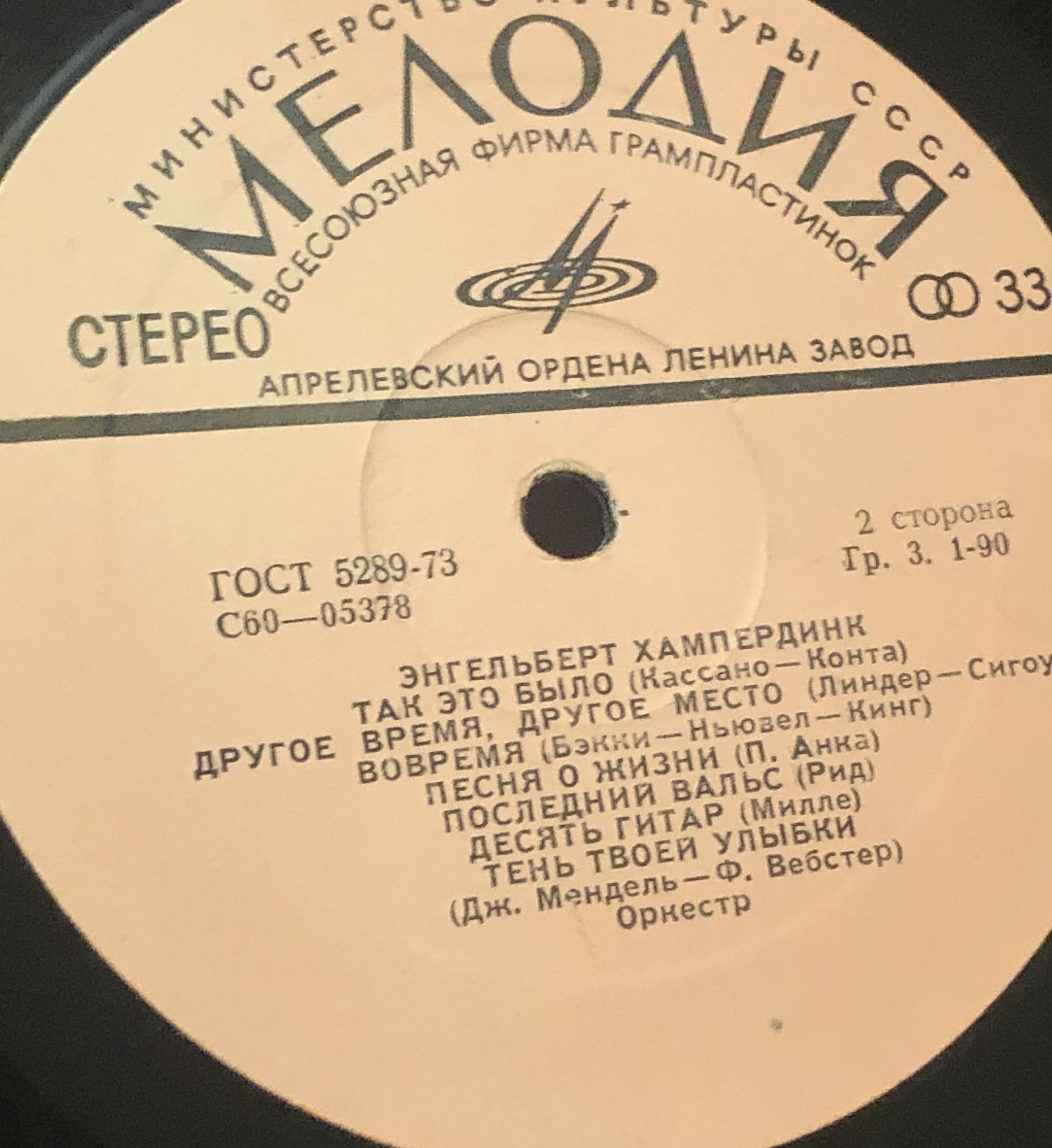 Виниловая пластинка "Т. Карапетян. Пятое время года" 300 мм. (Сост. на фото)