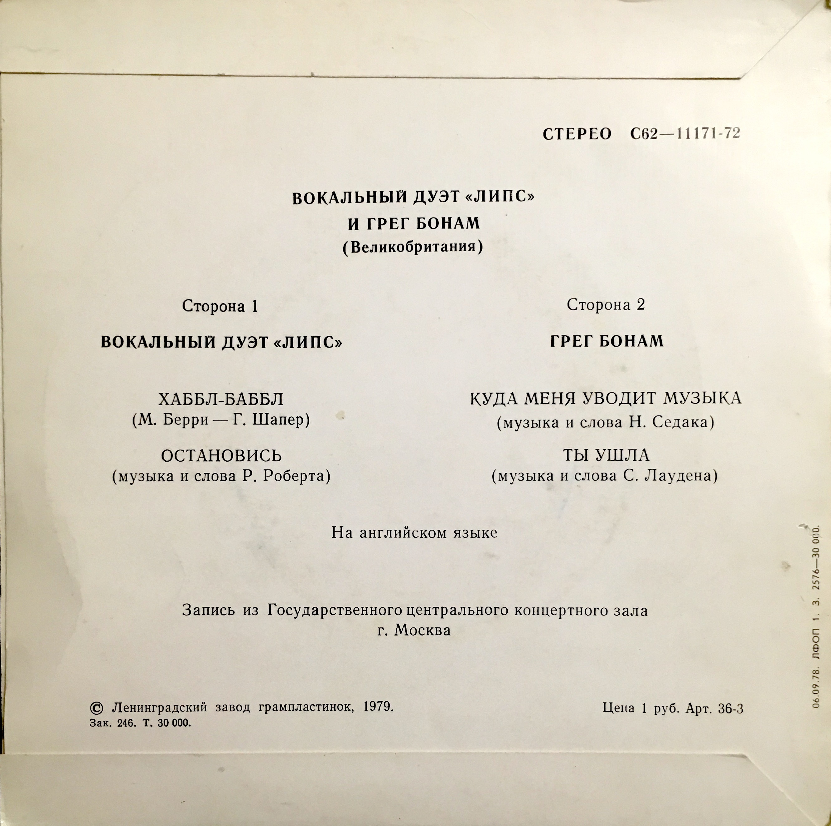 Пластинка виниловая "И. Бах, В. Бах. Исполнительское искусство" 300 мм. (Сост. отл.)