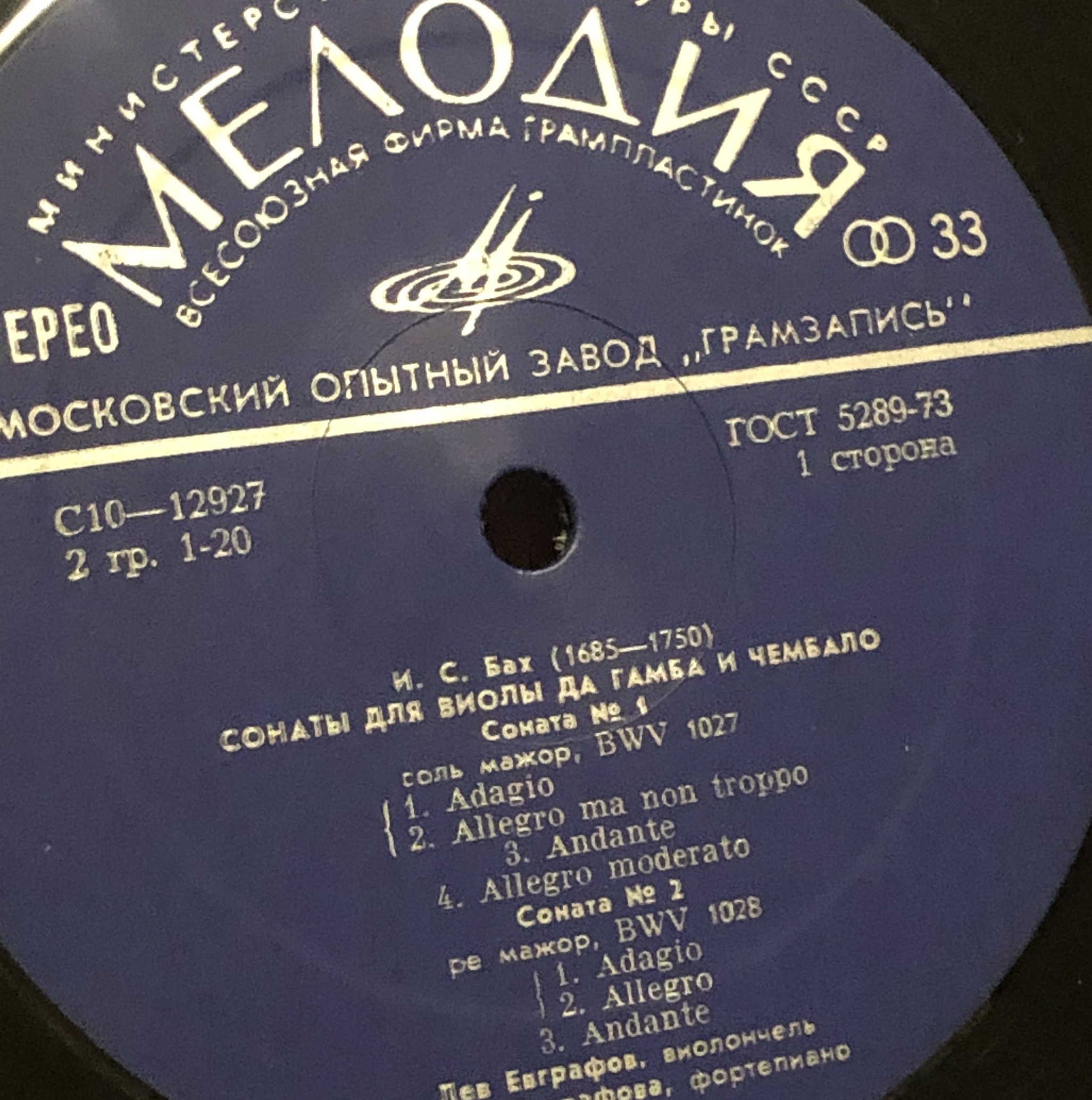 Виниловая пластинка И. С. Бах Сонаты Для Виолы Да Гамба И Чембало 300 мм