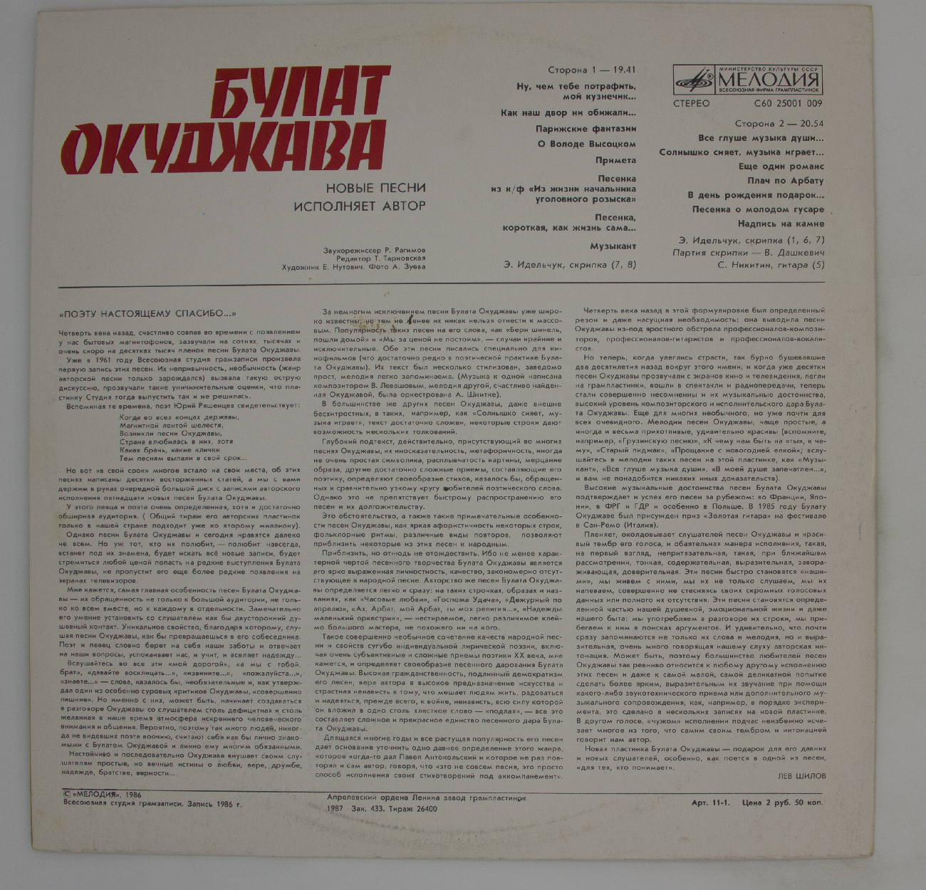 Виниловая пластинка Булат Окуджава - Новые песни, - LP