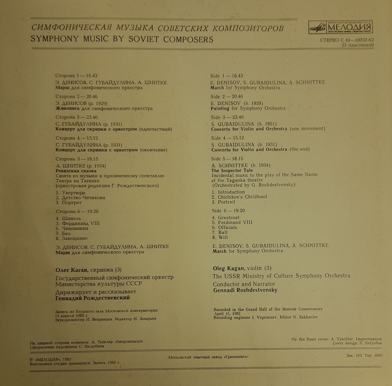 Набор виниловых пластинок (3 шт.) "Г. Рождественский. Cимфоническая музыка советских композиторов" М