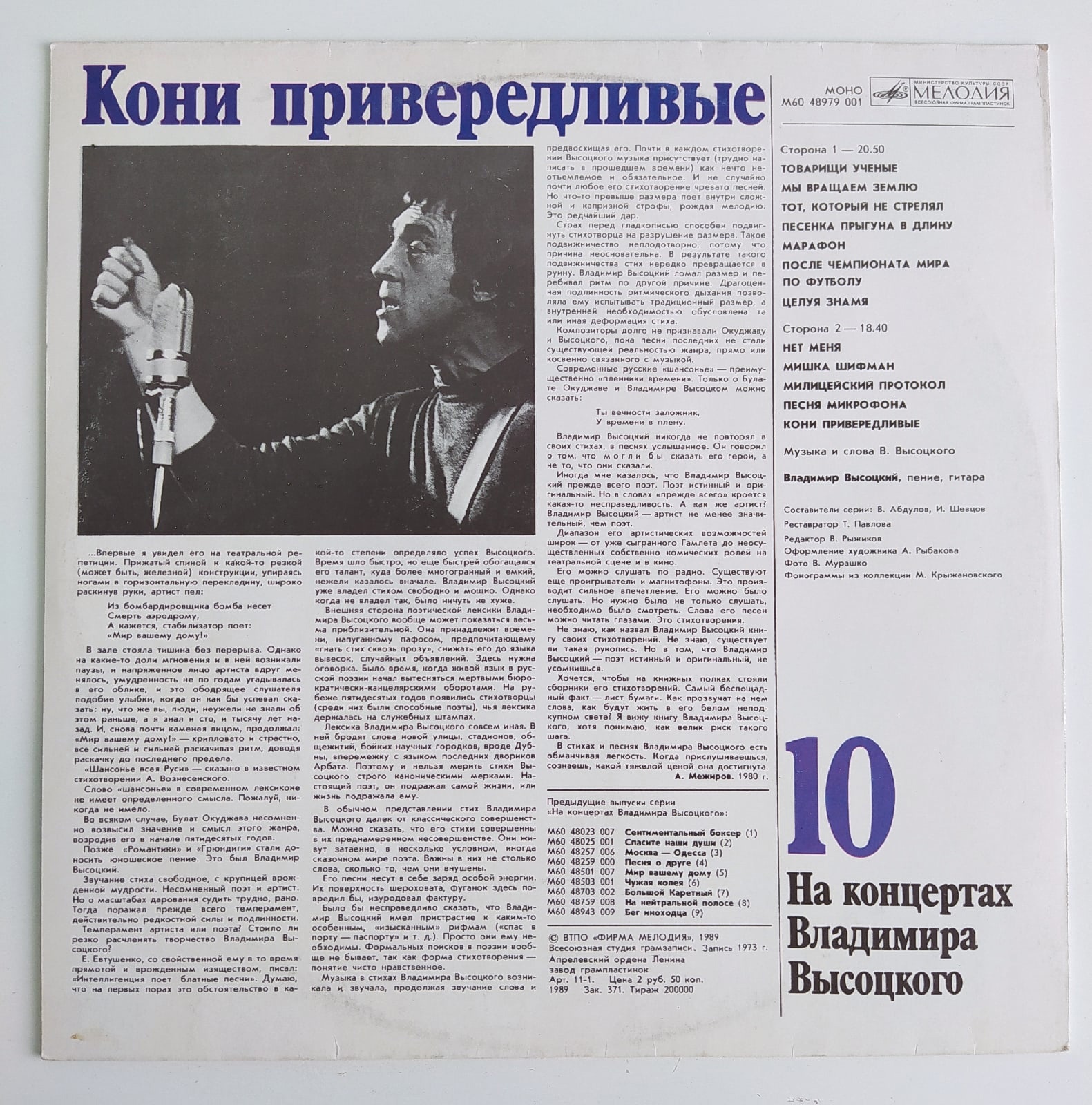 Виниловая пластинка Владимир Высоцкий Кони Привередливые На Концертах Владимира Высоцкого №10