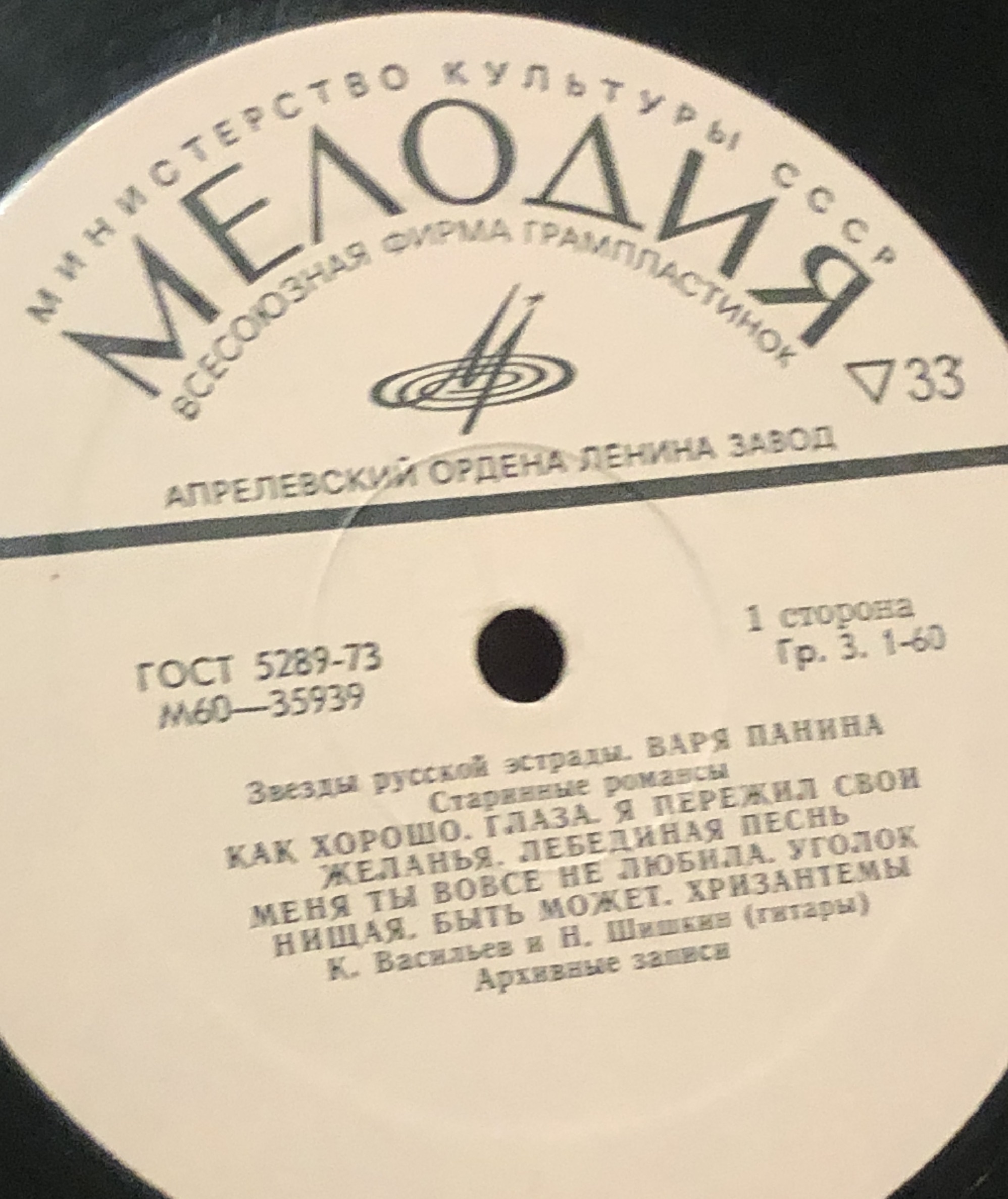 Виниловая пластинка Звезды русской эстрады. Варя Панина, 300 мм