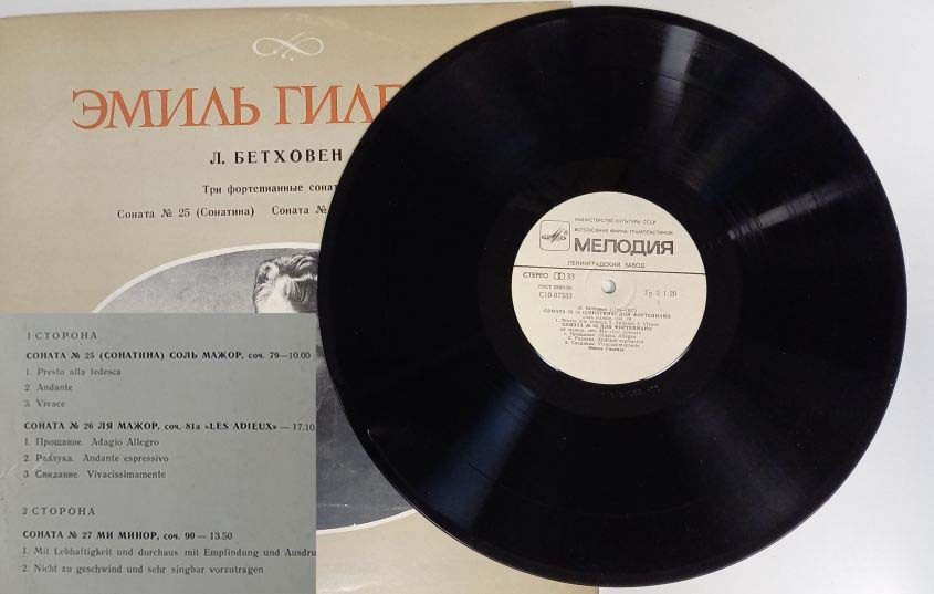 Пластинка виниловая "Э. Гилельс. Л. Бетховен.Три фортепианные сонаты" 300 мм. (Сост. отл.)
