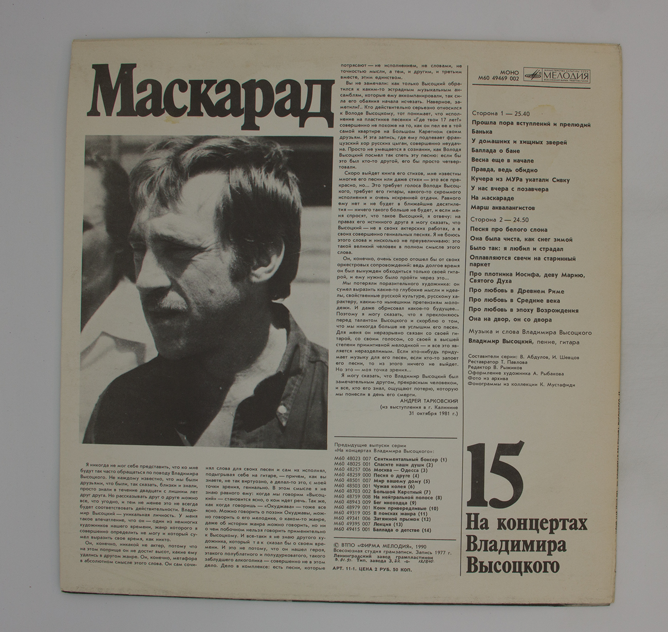 Виниловая пластинка Владимир Высоцкий - Маскарад, - (1 LP)