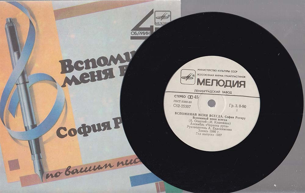 Пластинка виниловая "С. Ротару. Вспоминай меня всегда. Музыка капели" Мелодия 175 мм. (Сост. отл.)