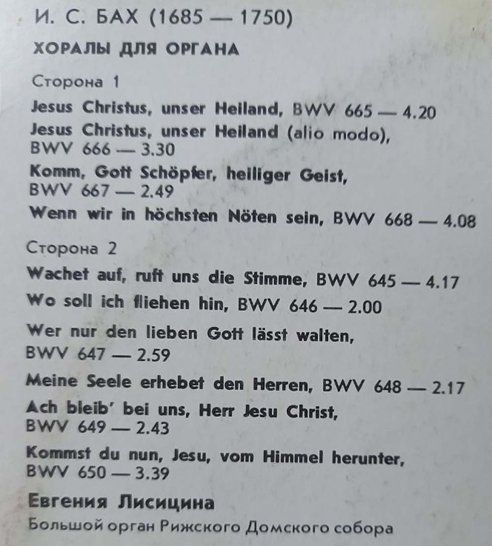 Пластинка виниловая "J. Bach. The big organ of Riga Dom" 300 мм. (Сост. отл.)