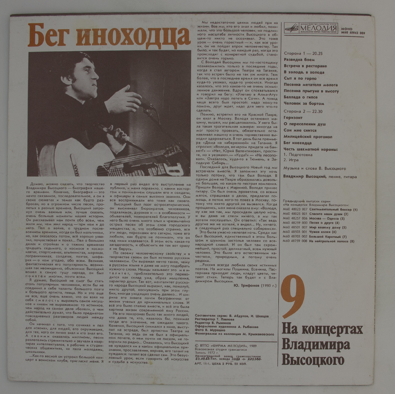Виниловая пластинка Владимир Высоцкий - Бег иноходца - LP