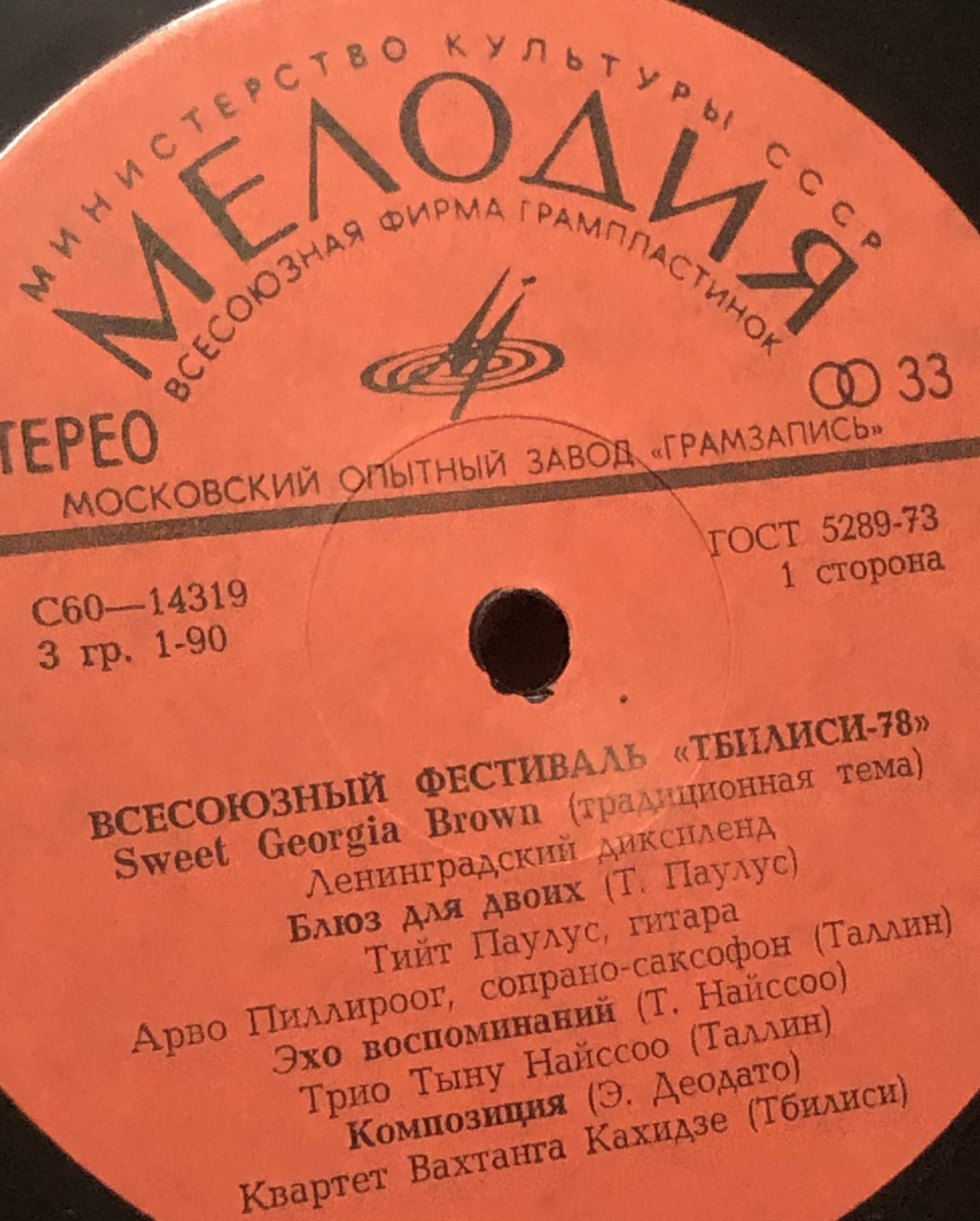 Виниловая пластинка Всесоюзный Джаз-Фестиваль Тбилиси-78 300 мм
