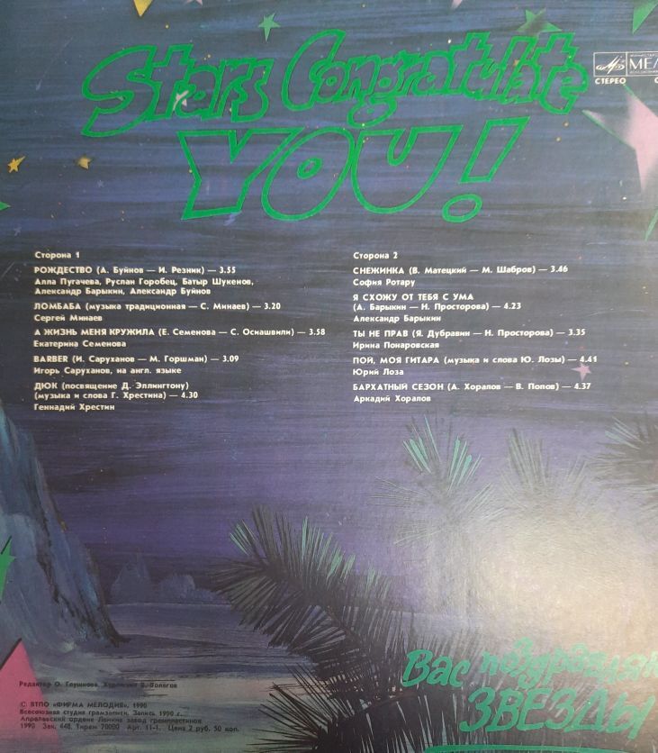 Пластинка виниловая "Эстрадные песни. Вас поздравляют звёзды" 300 мм. (Сост. на фото)