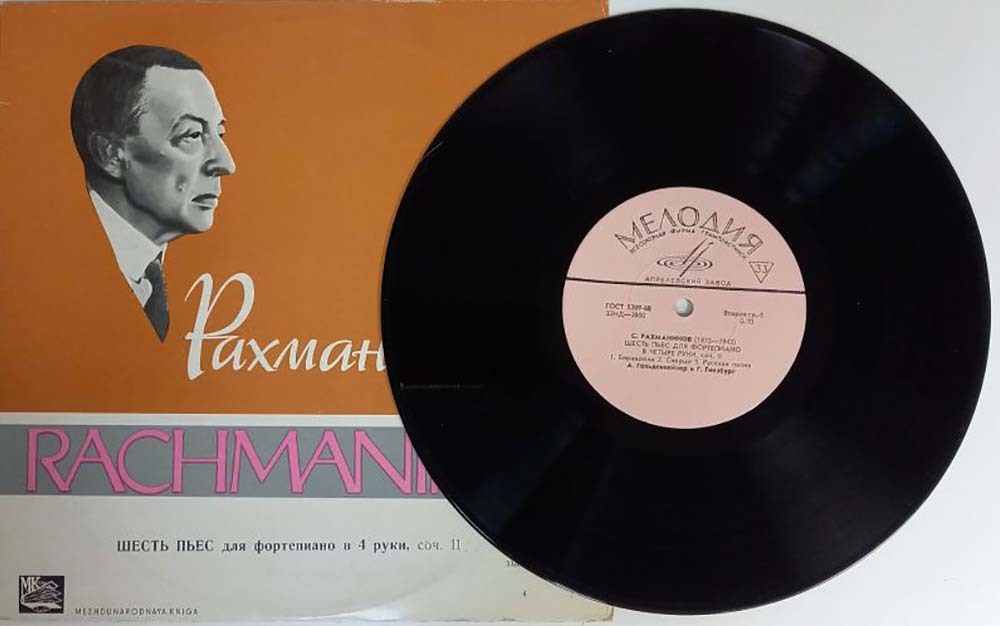 Пластинка виниловая "С. Рахманинов. Шесть пьес для фортепиано в 4 руки" 250 мм. (Сост. отл.)