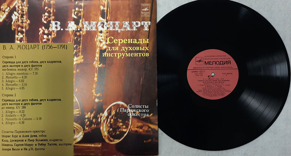 Виниловая пластинка "В.А. Моцарт. серенады для духовых инструментов" 300 мм. (Сост. отл.)
