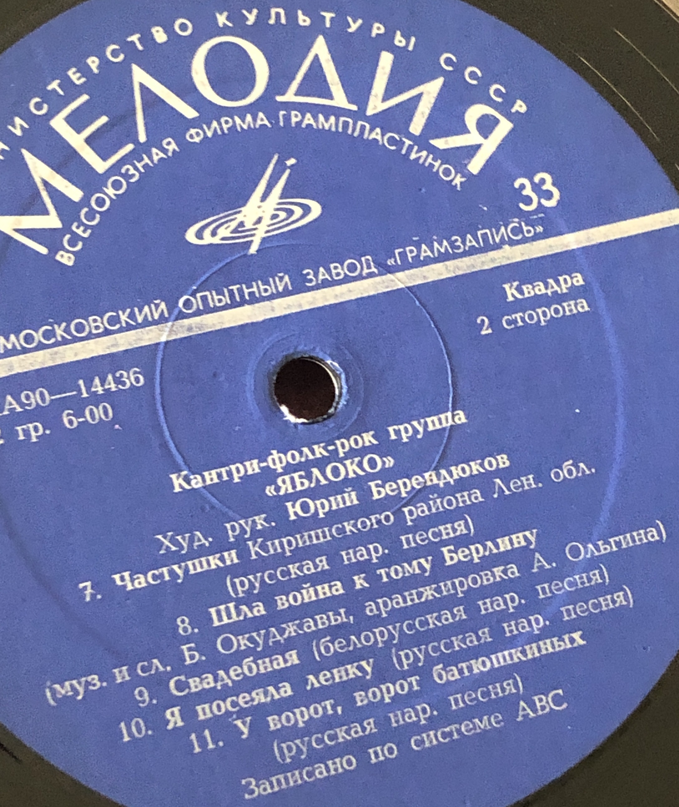 Виниловая пластинка Кантри фолк рок-группа - Яблоко 300 мм