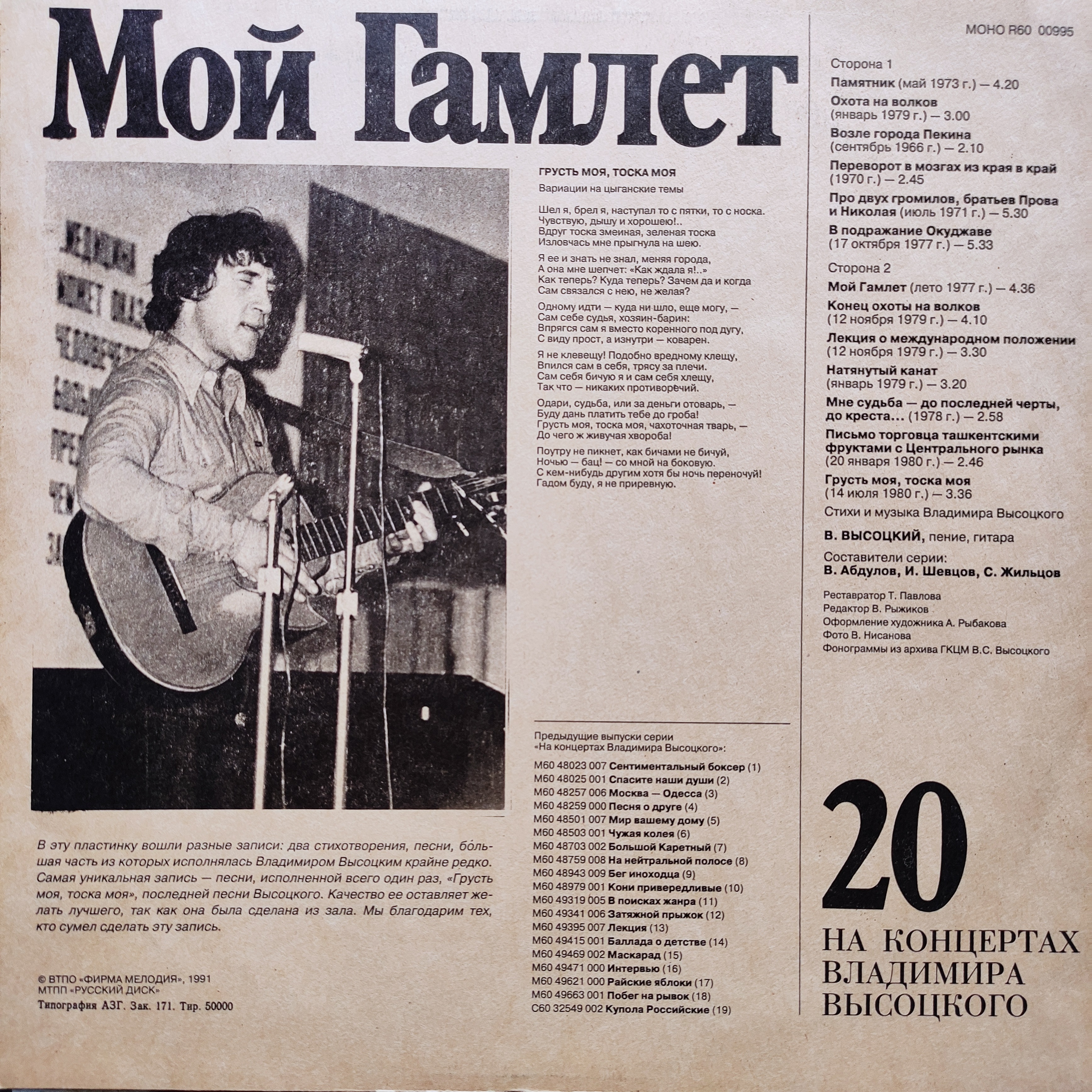 Виниловая пластинка Владимир Высоцкий серия "На концертах Владимира Высоцкого" № 20. В идеале