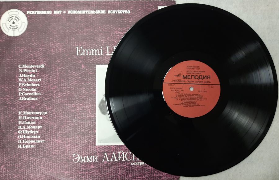 Пластинка виниловая "Э. Лайснер, контральто. Исполнительское искусство" Мелодия 300 мм. (Сост. отл.)