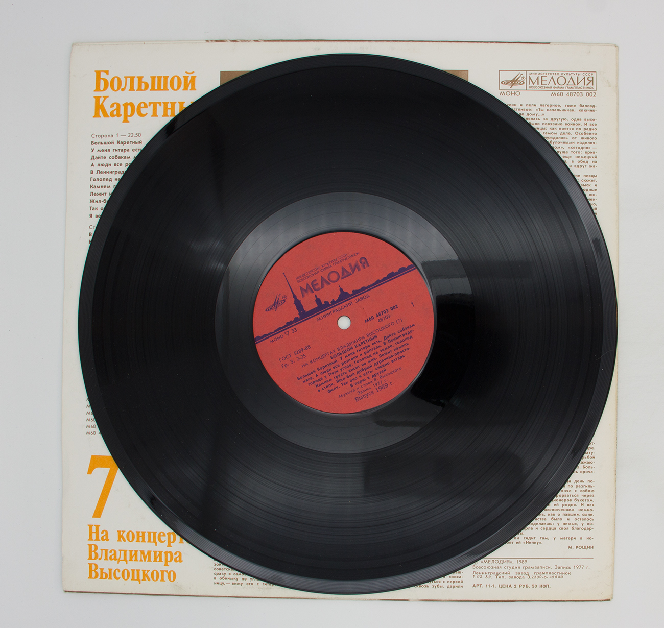 Пластинка виниловая "На концертах Владимира Высоцкого 5" Мелодия 1988 300 мм. (Сост. на фото)