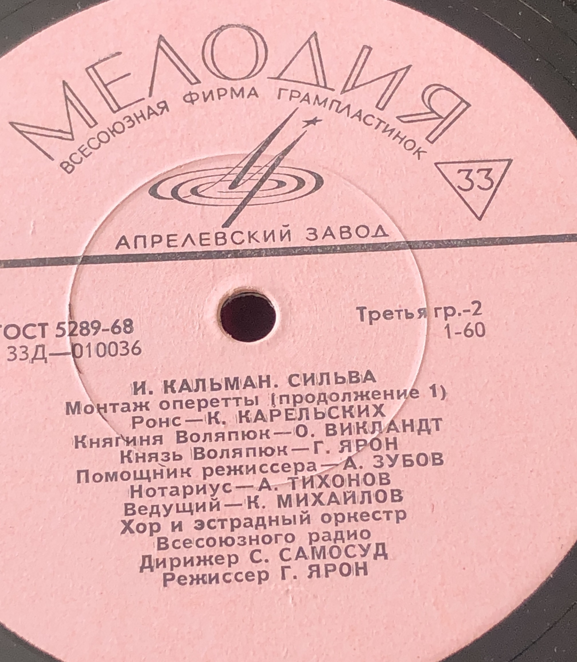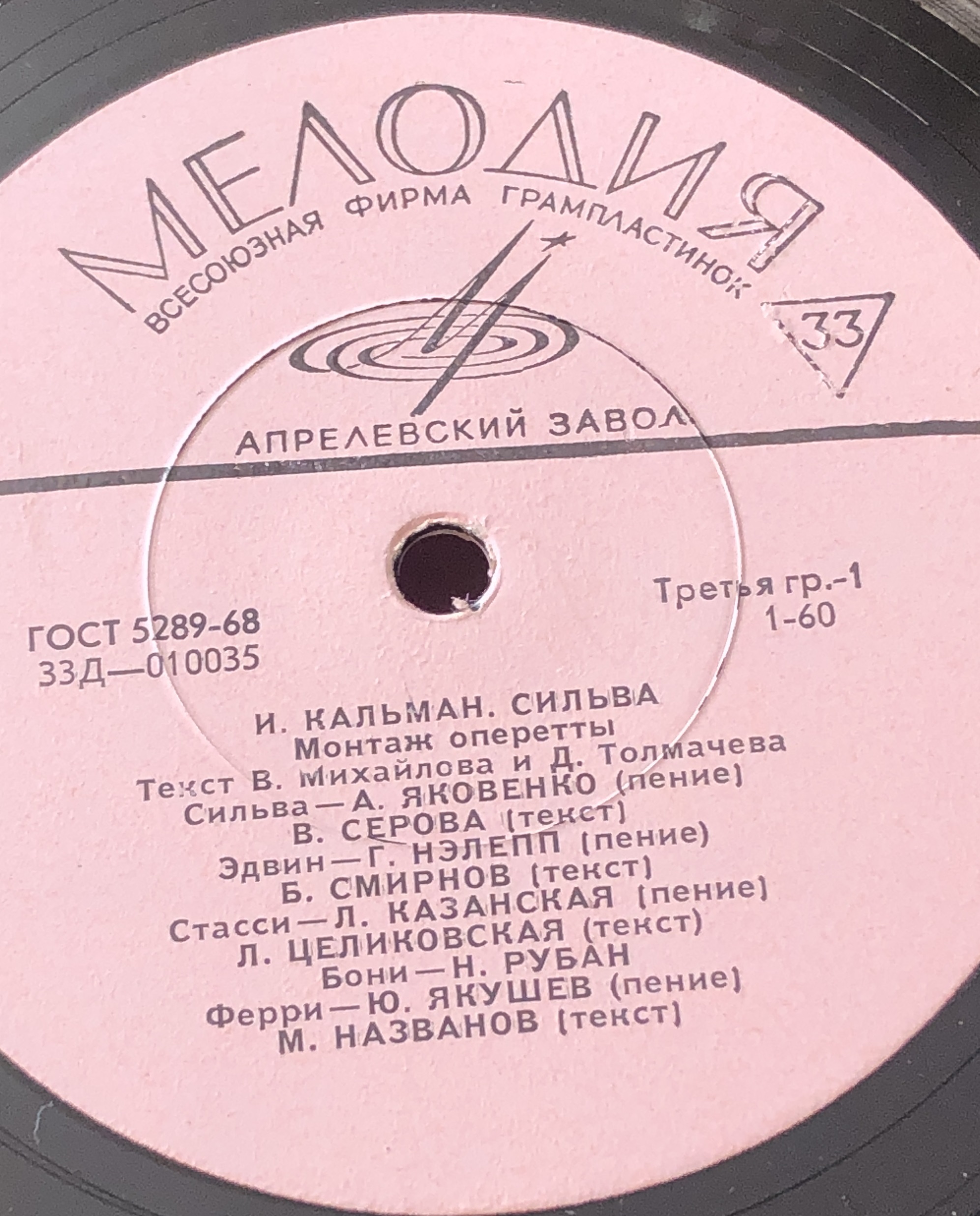 Виниловая пластинка Имре Кальман - Сильва монтаж оперетты 300 мм