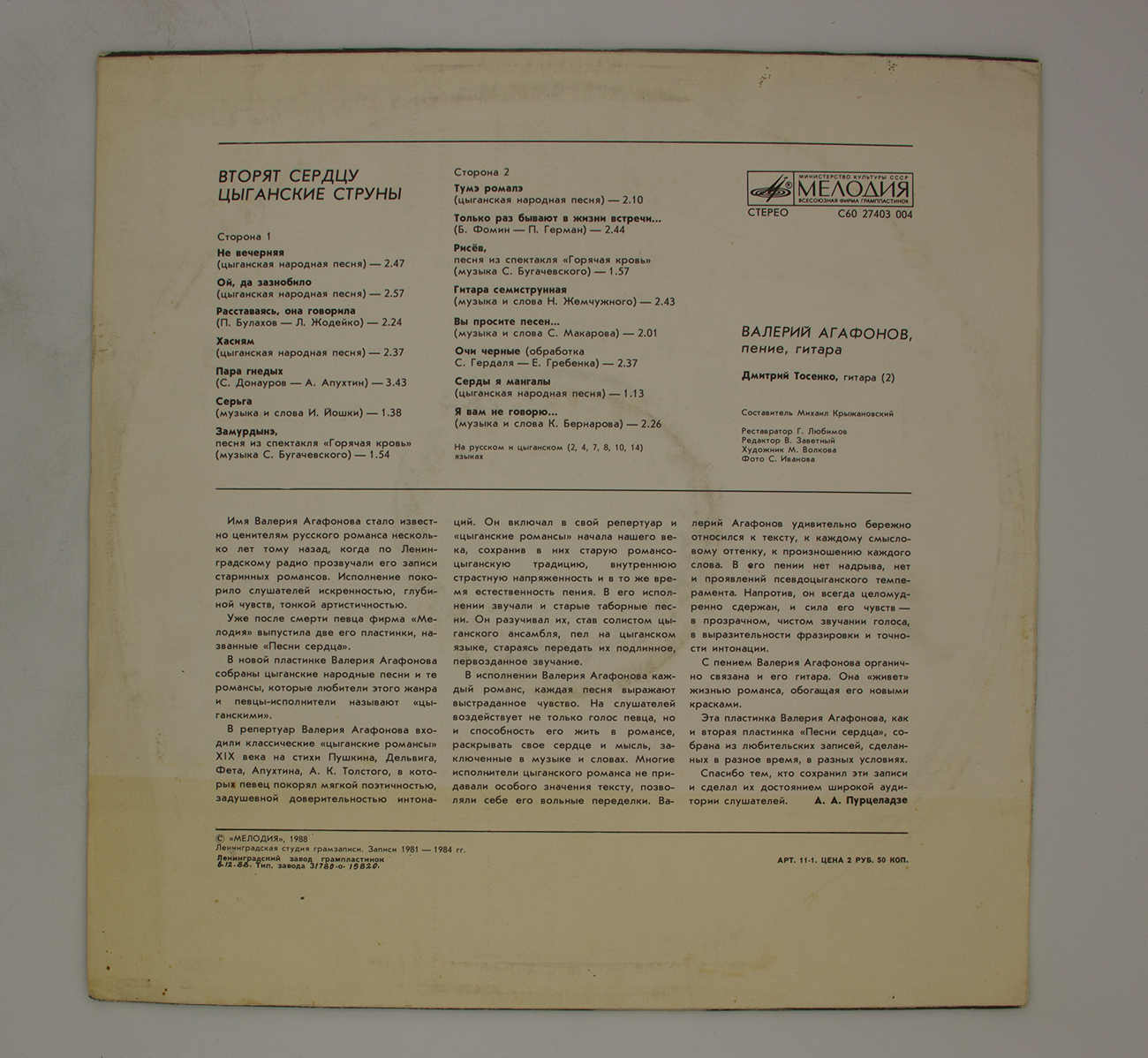 Виниловая пластинка Валерий Агафонов - Вторят сердцу цыганские струны- (LPx1)