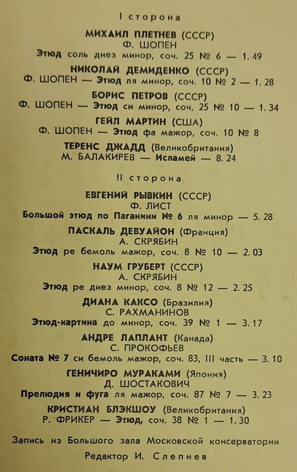 Пластинка виниловая "Сборник. Фортепианная музыка" 300 мм. (Сост. отл.)