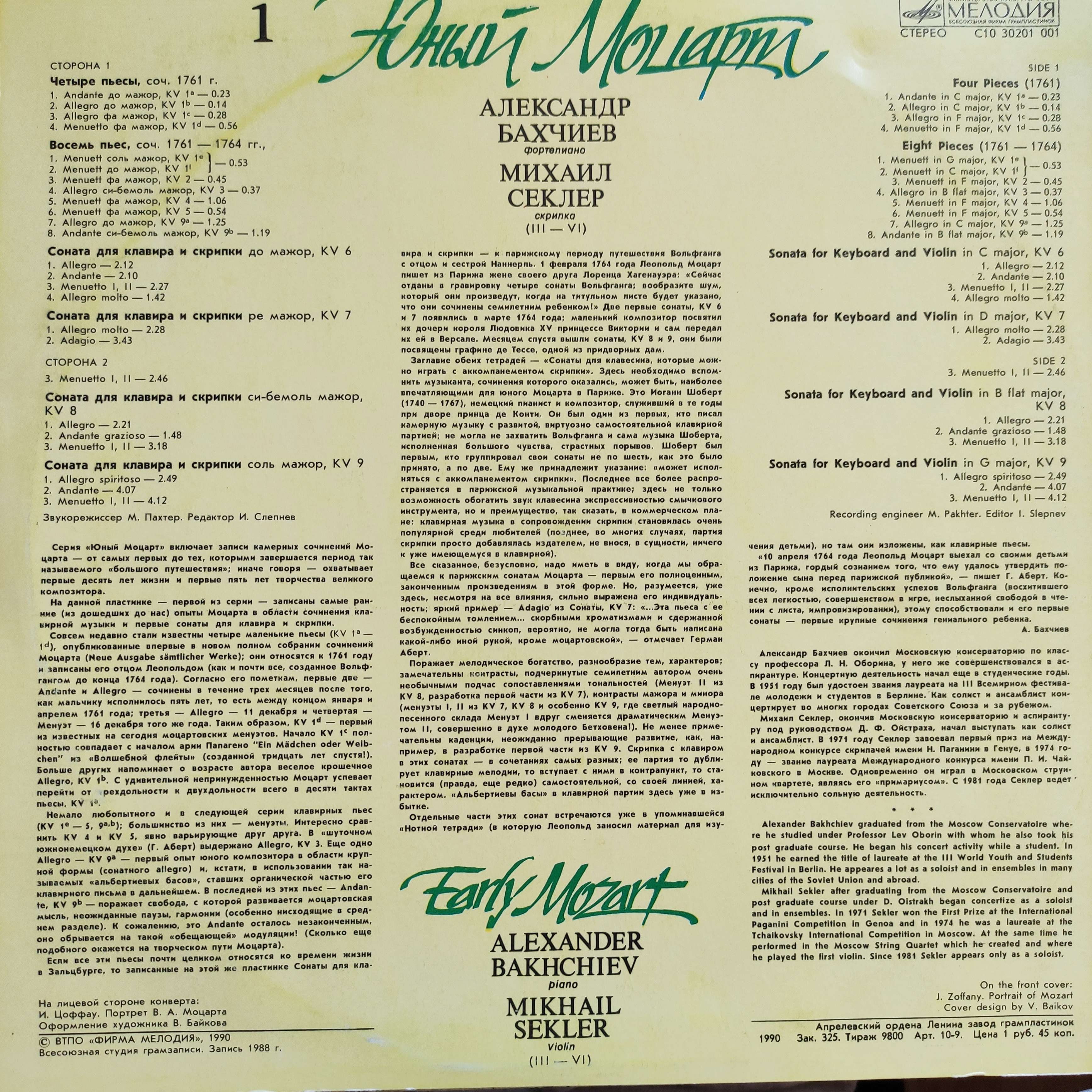 Пластинка виниловая. А. Бахичев: "Юный Моцарт 1. Клавирные пьесы".Состояние новой.